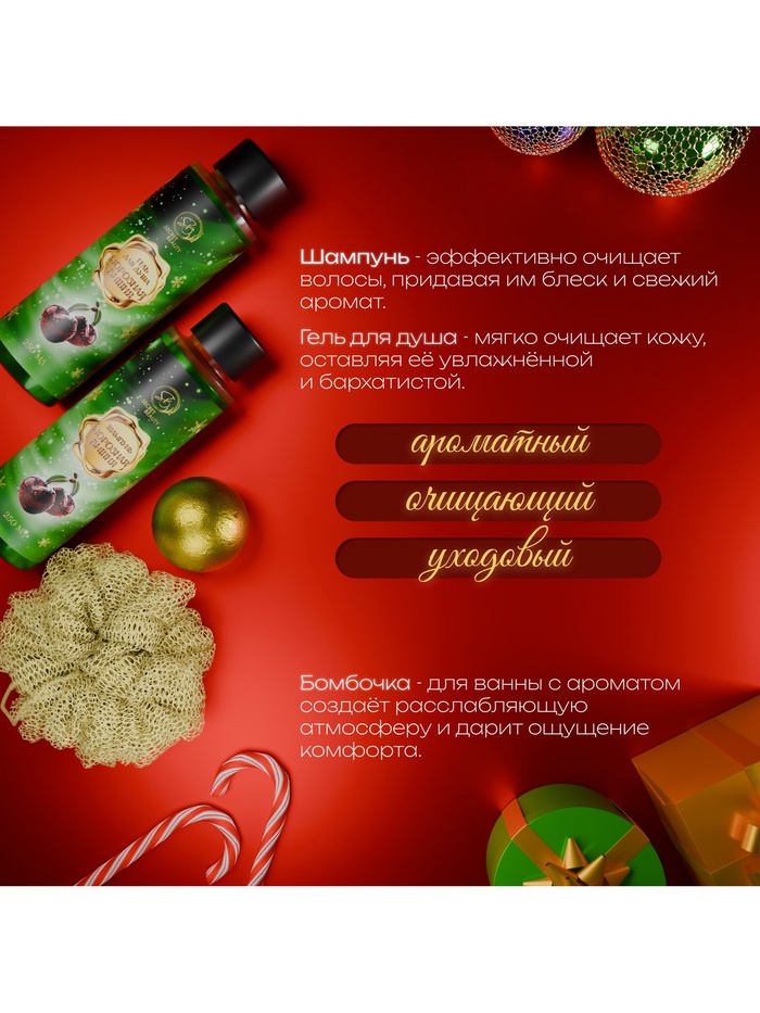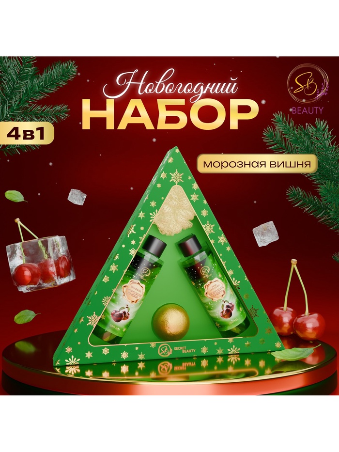 Новогодний подарочный набор косметики «Новогодний экспресс», с ароматом вишни и корицы. Зеленая серия