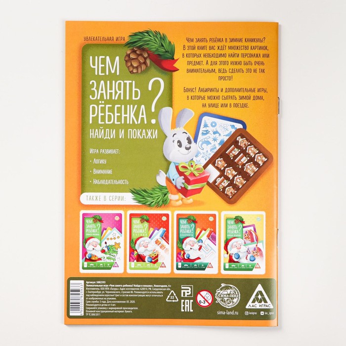 Не знаете, чем занять ребёнка в зимние каникулы? В этой книге вас ждёт множество картинок, в которых нужно найти персонажей или предметы. А для этого следует быть очень внимательным, ведь сделать это не так просто! Также в качестве бонуса есть дополнительные игры, в которые можно сыграть зимой дома, на улице или в поездке.