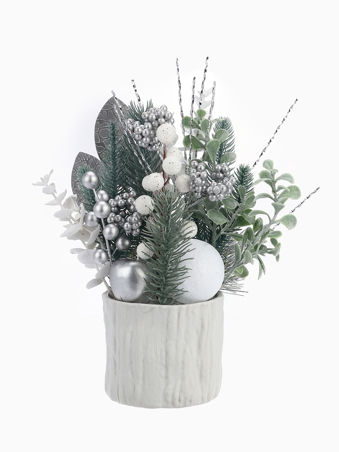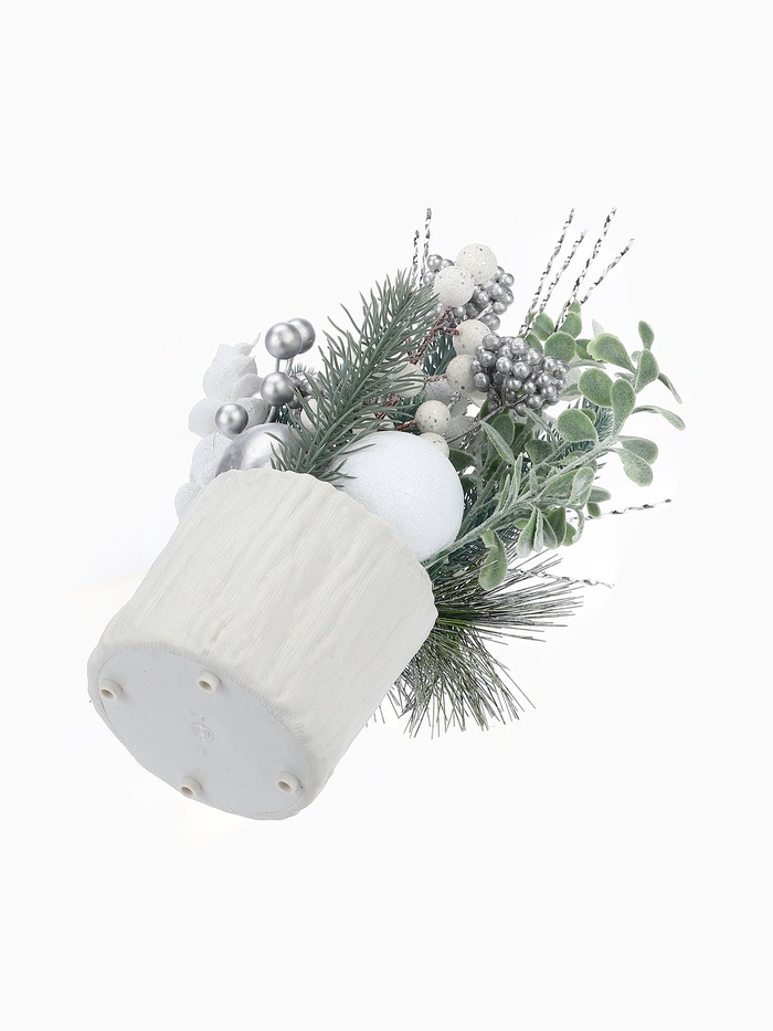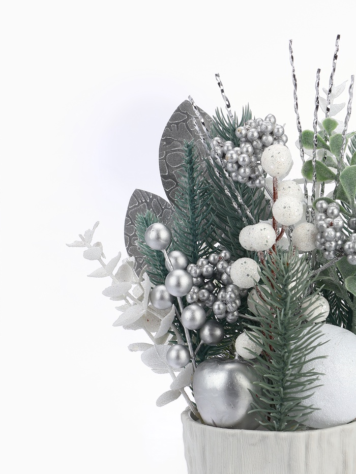 Новогодняя композиция «Величие» — это мягкий и изысканный акцент для праздничного стола или подоконника. Изделие размером 24х10,5 см выполнено из прочного пластика, оформлено в белом цвете и создано в духе скандинавского дизайна с отсылкой к датской простоте — решение для тех, кто ценит свет, форму и атмосферу зимнего торжества без лишней вычесленности.