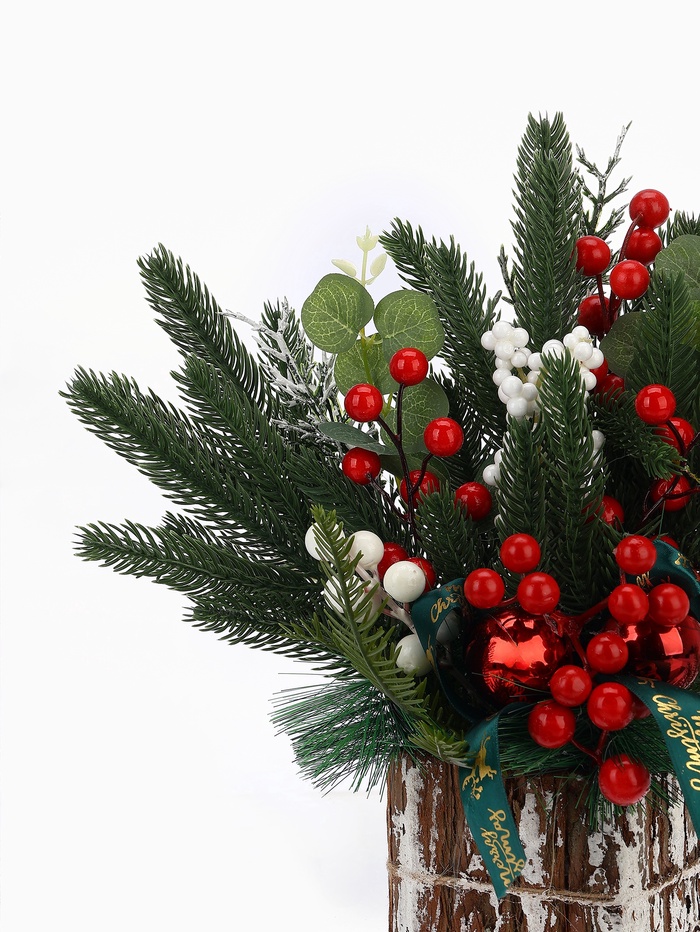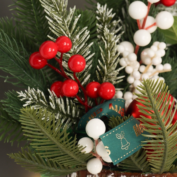 Композиция оживляет интерьер, напоминая о традициях зимних праздников. Она подходит для самостоятельного оформления или в сочетании с другими элементами, чтобы наполнить пространство теплом и красотой новогодней сказки.