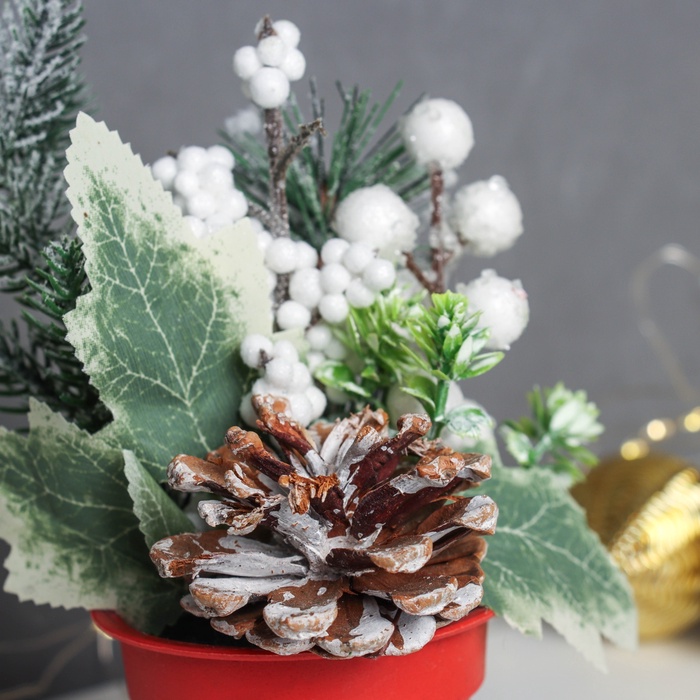 Эта композиция станет ярким дополнением зимнего декора, создавая ощущение праздника и уюта. Ее можно использовать как самостоятельный элемент или в составе более сложных праздничных композиций. Простая в установке и аккуратная по исполнению, она поможет подчеркнуть атмосферу Нового года дома или в офисе, делая праздник более запоминающимся и теплым.