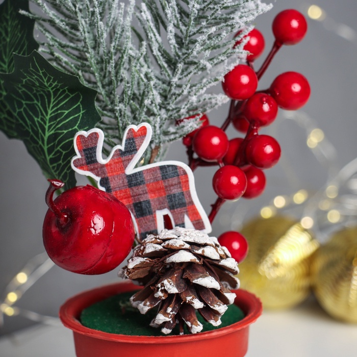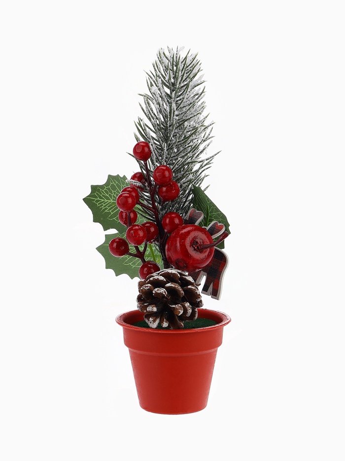 Новогодняя композиция в горшке с зеленью и красными акцентами станет ярким украшением праздничного стола. Ее размеры 25×7 см позволяют создавать аккуратные и эффектные зимние декорации, которые подчеркнут атмосферу Нового года и зимнего праздника. Такой элемент отлично впишется в интерьер, добавляя уют и праздничное настроение.