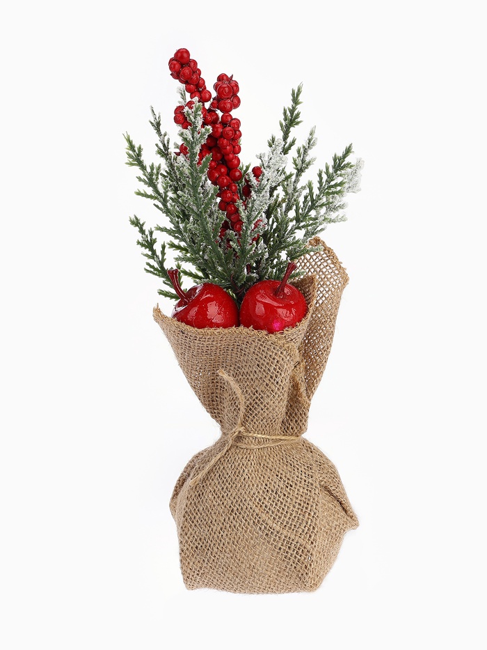 Новогодняя композиция «Яркий праздник» — это стильное и мягкое дополнение для праздничного стола или подоконной зоны. Изделие размером 23х10 см выполнено из пластика и текстиля, оформлено в зелёно-красно-коричневой гамме и создано в духе скандинавского дизайна — решение для тех, кто ценит натуральные формы, свет и атмосферу зимнего уюта.