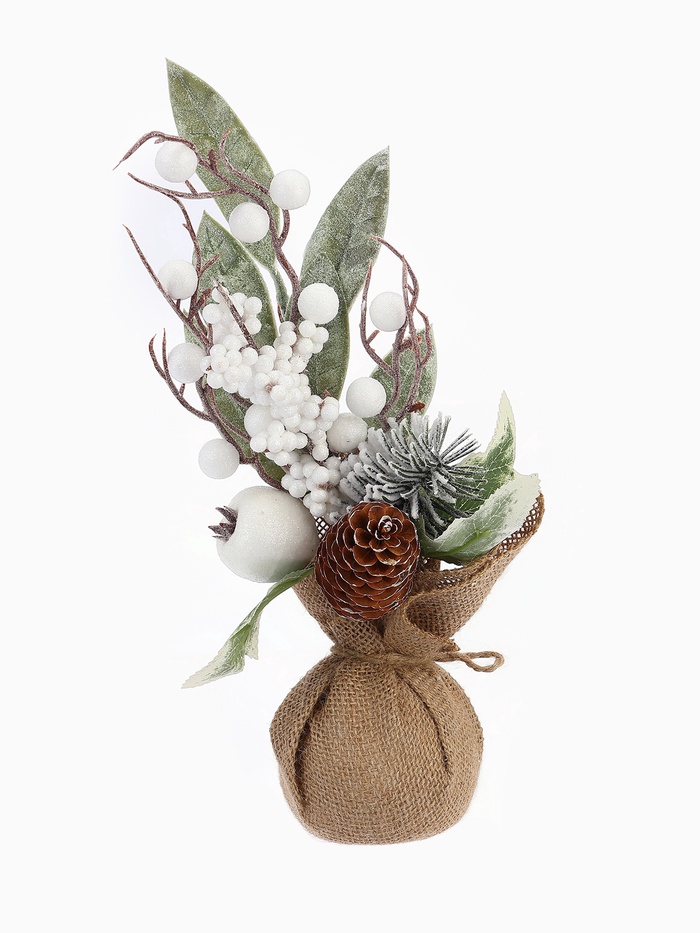 Новогодняя композиция в мешочке с зелеными и коричневыми элементами станет стильным украшением праздничного стола. Размер 26×10 см позволяет создавать уютные зимние декорации, которые подчеркнут атмосферу Нового года и зимних праздников. Такой аксессуар легко впишется в любой интерьер, добавляя тепла и праздничного настроения.