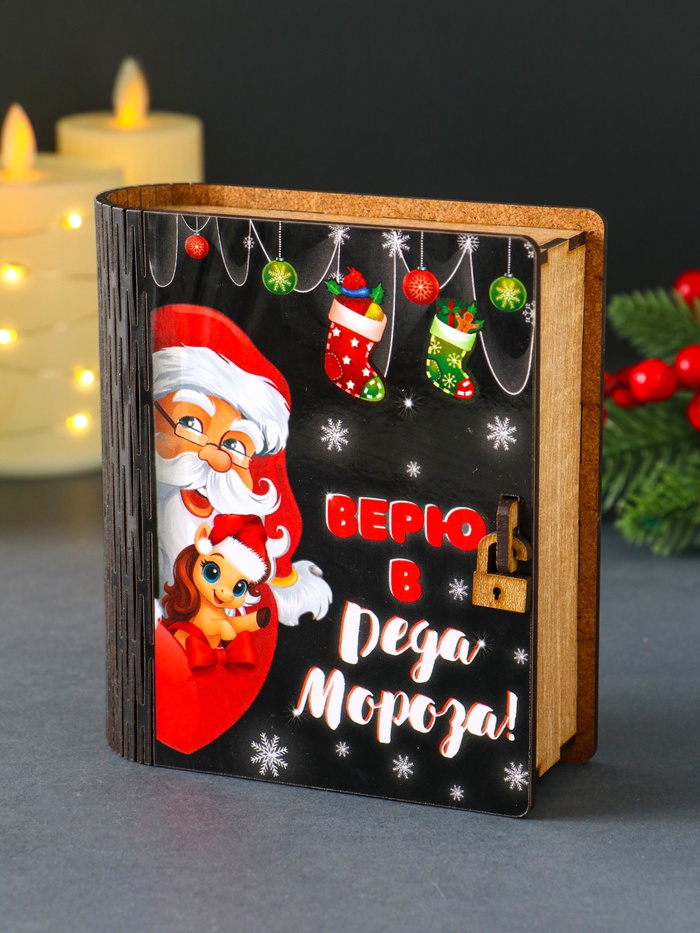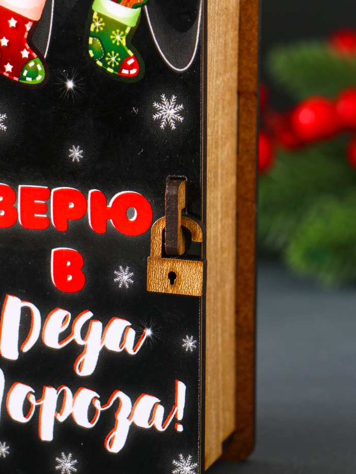 Новогодняя копилка-шкатулка "Верю в Деда Мороза" 14х12х5 см
