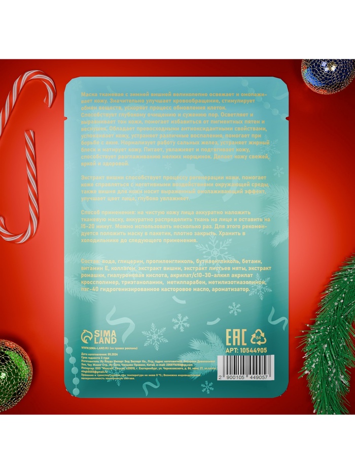 Новогодняя маска для лица, тканевая, увлажняющая — это идеальный способ побаловать себя и своих близких в Новый год. Маска создана для глубокой увлажняющей заботы о коже, обеспечивая ей интенсивное питание и свежесть. Тканевая основа плотно прилегает к коже, позволяя активным ингредиентам проникать и работать эффективно.