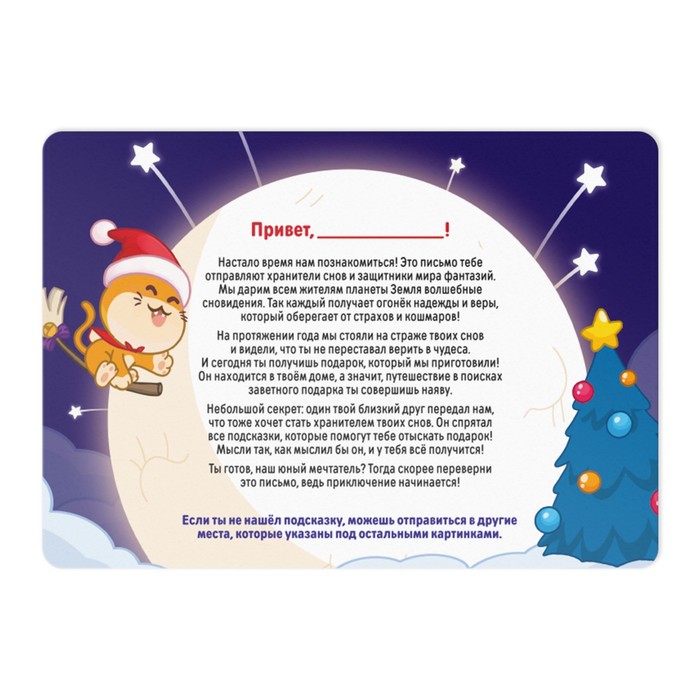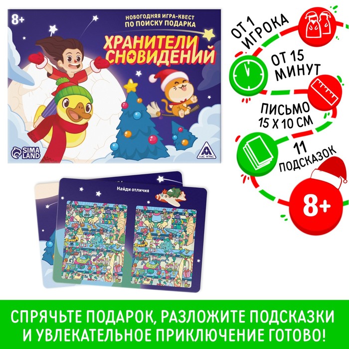 Новогодняя настольная игра-квест по поиску подарка «Новый год: Хранители сновидений», 11 подсказок, письмо, 8+