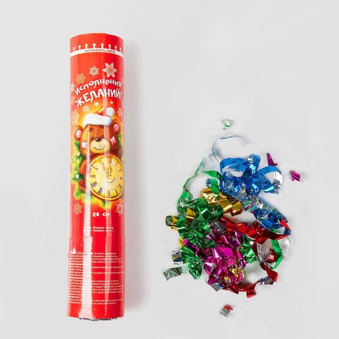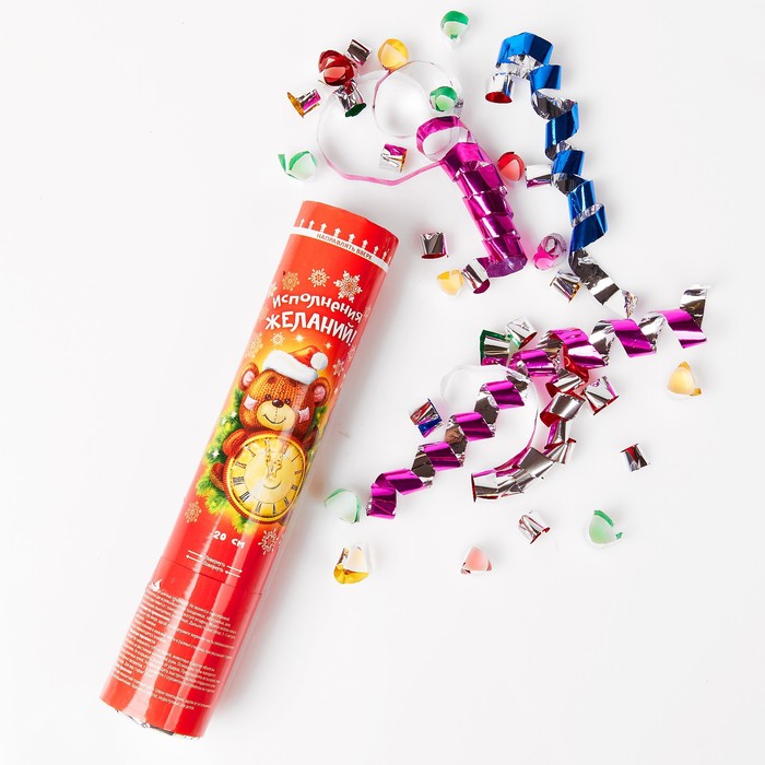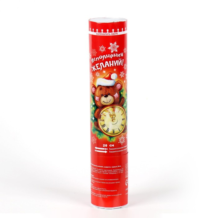 Устроить незабываемую вечеринку и встретить бой курантов яркими фейерверками поможет новогодняя пневмохлопушка поворотная «Исполнения желаний», конфетти, фольга, 20 см. Атрибут с авторским новогодним принтом станет вашим маленьким помощником в создании праздника. Удивите друзей и родных разноцветным взрывом радости в виде серпантина и конфетти!