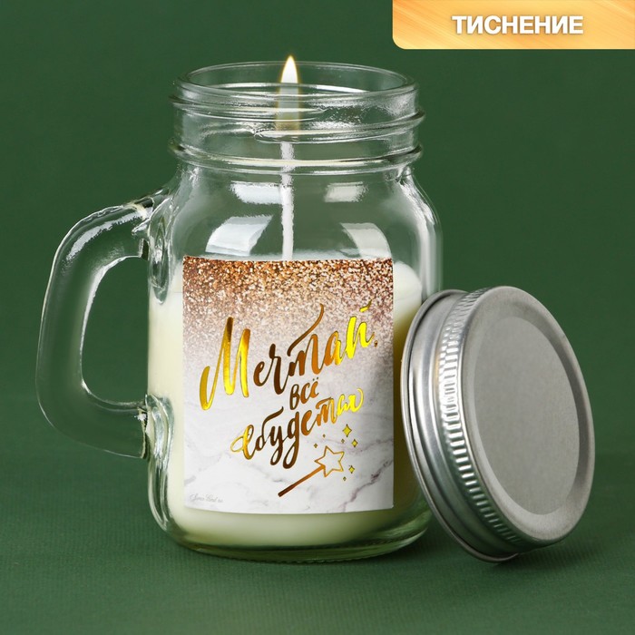 Свеча для интерьера вашего дома, с ароматом. Лучше всего наша свеча подходит для оригинального подарка, а также для декора. Внутренняя атмосфера дома наполняется волшебным теплом и уютом при потрескивании горящей свечи. Данный интерьерный элемент создаёт ощущение распаленного камина. Фитиль горит размеренно и не коптит. Декор для дома впишется в любой интерьер. Декоративная свеча, которая состоит из парафина, оформлена в прозрачную банку из жаропрочного стекла, что выглядит красиво и необычно.