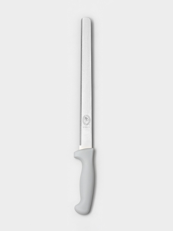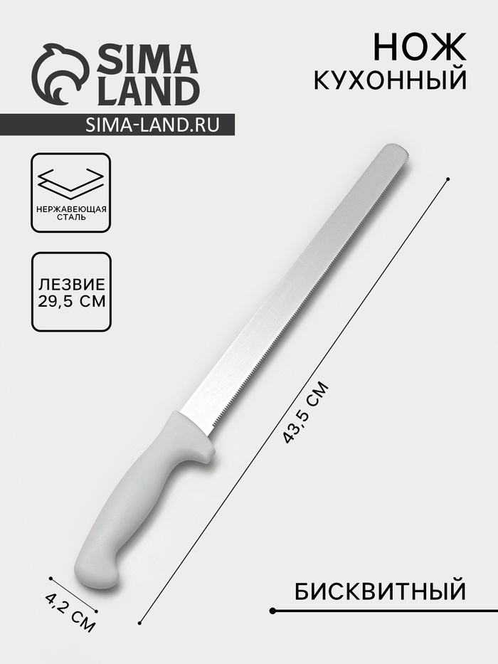 Нож для бисквита, мелкие зубчики, ручка пластик, рабочая поверхность 29,5 см, толщина лезвия 1,9 мм, цвет белый