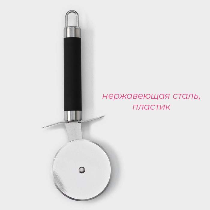 Нож для пиццы — универсальный кухонный инструмент, который не только легко разрезает готовую выпечку, но и помогает поделить на слайсы липкое тесто. Нож имеет эргономичную форму ручки и острое круглое лезвие. Колесо, прикреплённое к рукояти, продавливает продукт, а не разрезает его в отличие от классического ножа. Благодаря такому способу тесто разрезается, а начинка остается на месте.