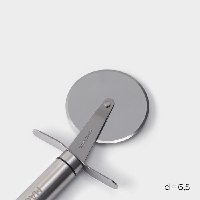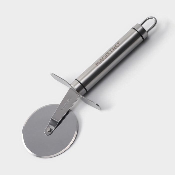 Нож для пиццы — универсальный кухонный инструмент, который не только легко разрезает готовую выпечку, но и помогает поделить на слайсы липкое тесто. Нож имеет эргономичную форму ручки и острое круглое лезвие. Колесо, прикреплённое к рукояти, продавливает продукт, а не разрезает его в отличие от классического ножа. Благодаря такому способу тесто разрезается, а начинка остается на месте.