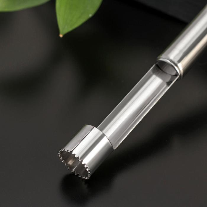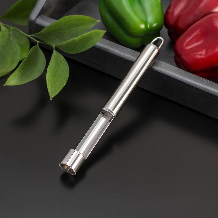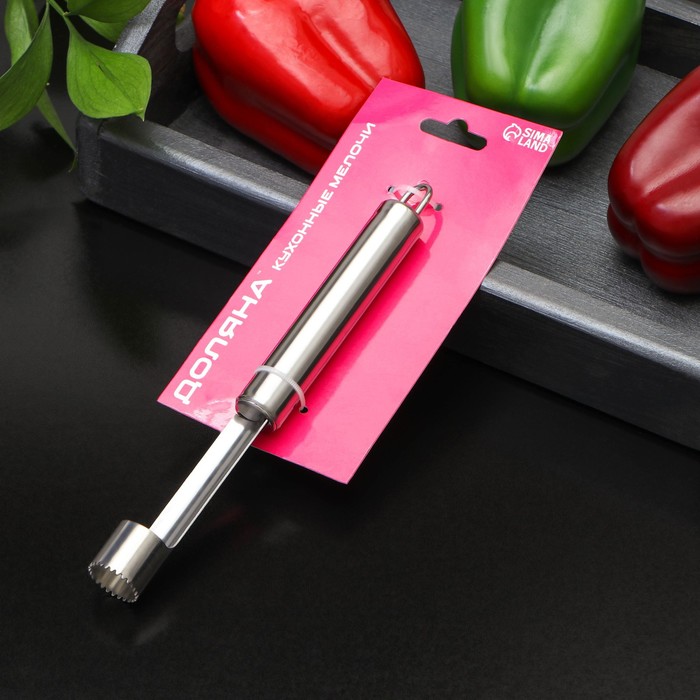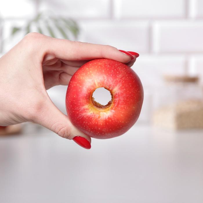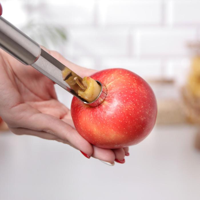 Нож для сердцевины – простой гаджет, который быстро избавит плод от косточек и плодоножки, оставив в центре аккуратное отверстие цилиндрической формы. Изделие имеет удобную ручку, которая не скользит в руке. Безопасное приспособление значительно облегчит процесс нарезки фруктов. Важно, что после такой процедуры яблоки и груши сохранят свой привлекательный внешний вид!