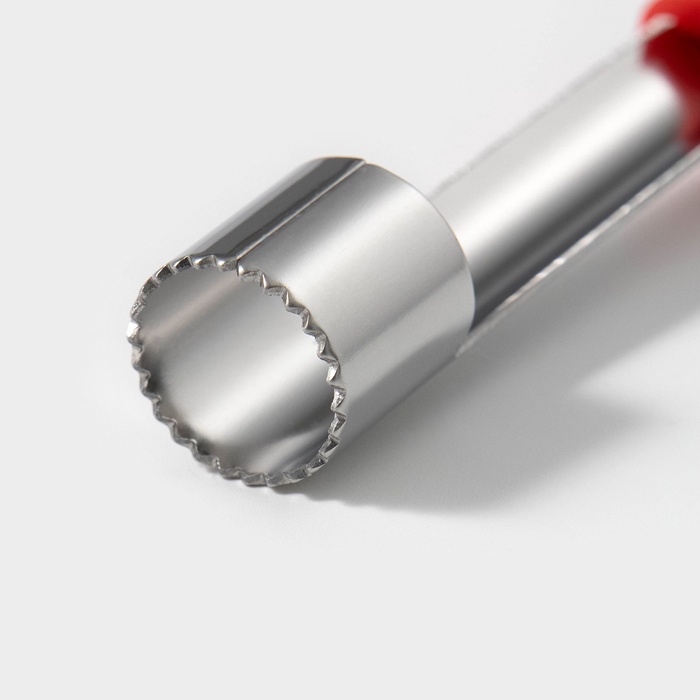 Нож для сердцевины – простой гаджет, который быстро избавит плод от косточек и плодоножки, оставив в центре аккуратное отверстие цилиндрической формы. Изделие имеет удобную ручку, которая не скользит в руке. Безопасное приспособление значительно облегчит процесс нарезки фруктов. Важно, что после такой процедуры яблоки и груши сохранят свой привлекательный внешний вид!