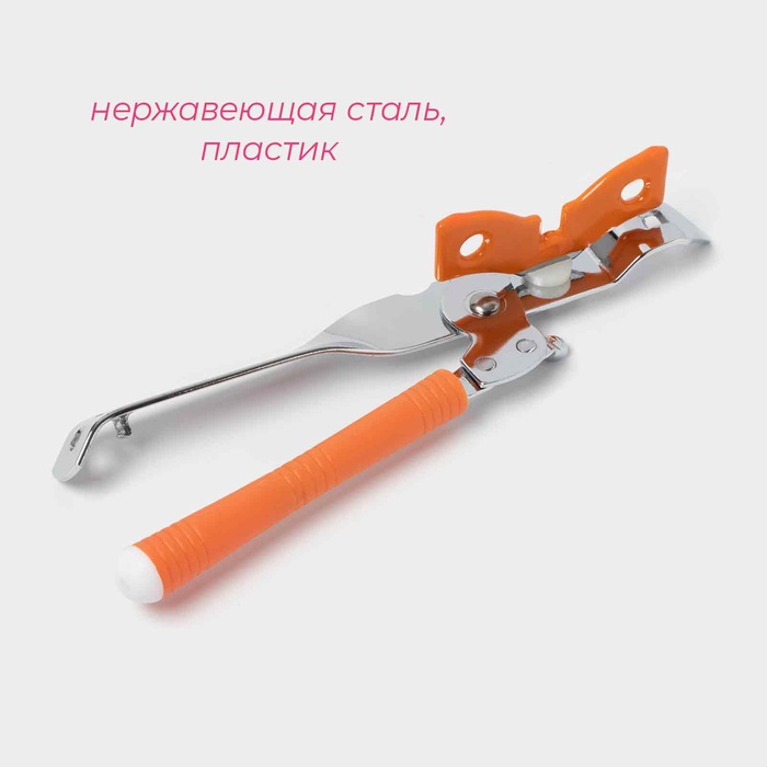 Сделайте открытие консервов более простым и удобным с помощью этого яркого консервного ножа! Он имеет острое лезвие, которое легко справляется с любой консервной банкой, и удобную пластиковую ручку яркого оранжевого цвета, которая делает использование ножа более комфортным и привлекательным.