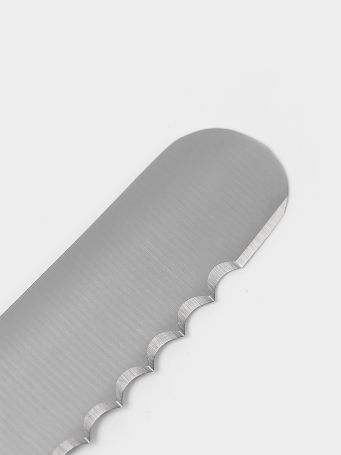 - Волнистая заточка: обеспечивает легкую и аккуратную нарезку.