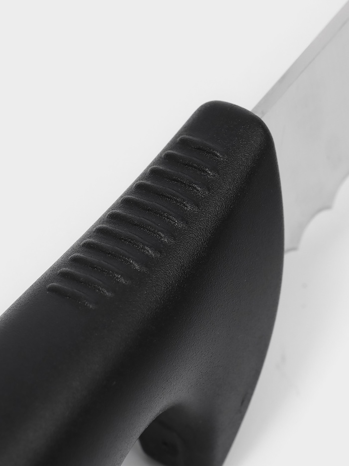 Нож "Sharp" оснащен длинным лезвием с серрейторной заточкой, которое легко справляется с хрустящей корочкой и мягкой мякотью хлеба. Эргономичная черная ручка обеспечивает удобный и надежный захват.