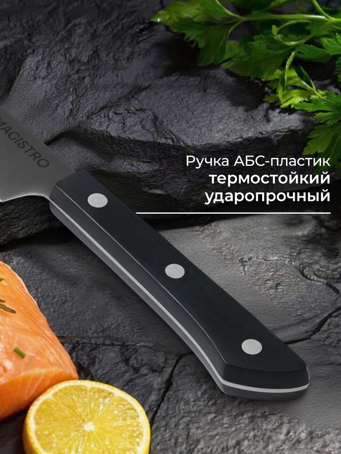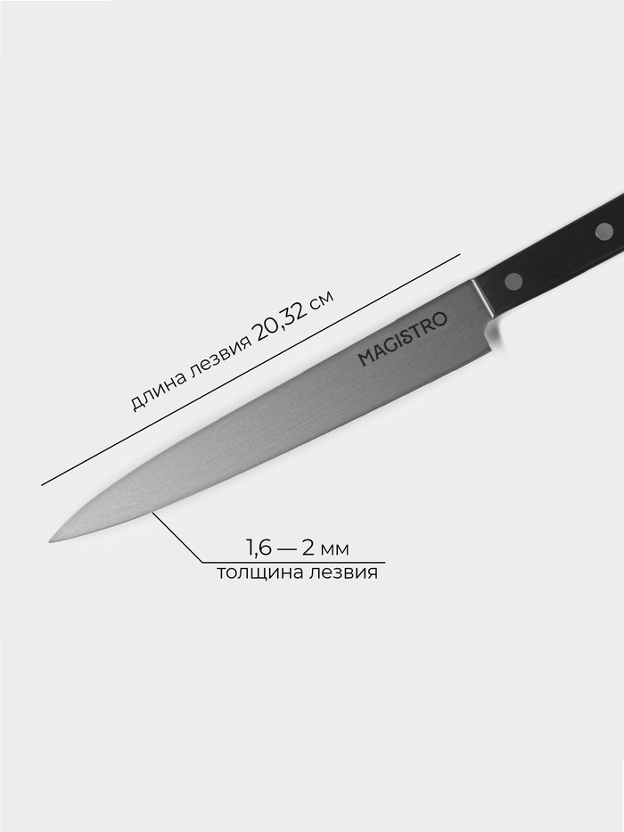 - Элегантный дизайн: черный цвет и лаконичная форма придают ножу стильный и современный вид.
