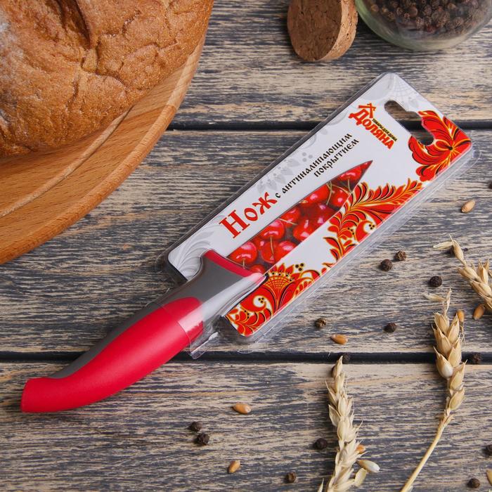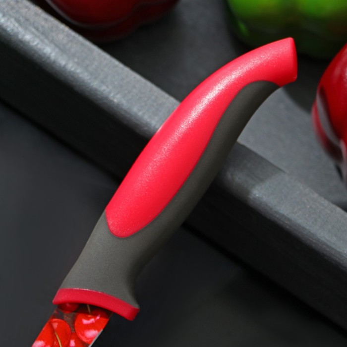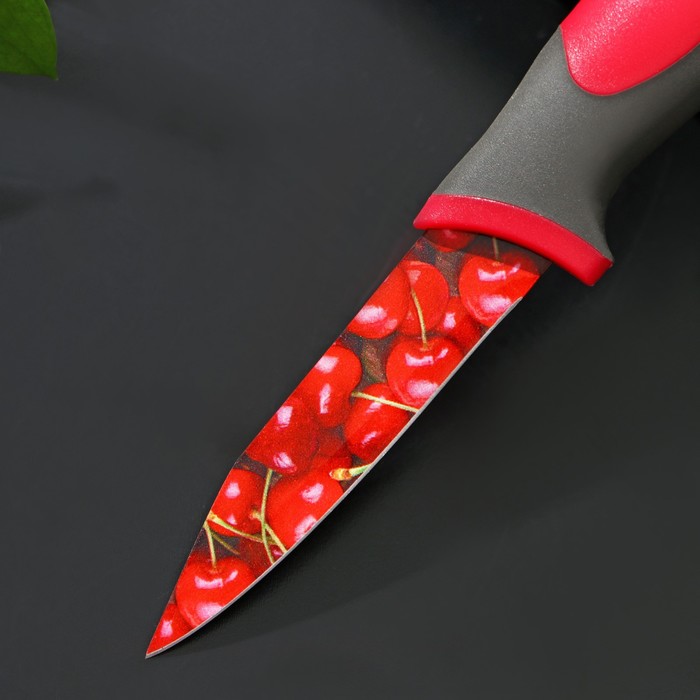 Нож кухонный с антиналипающим покрытием Доляна «Вишенки», лезвие 8 см