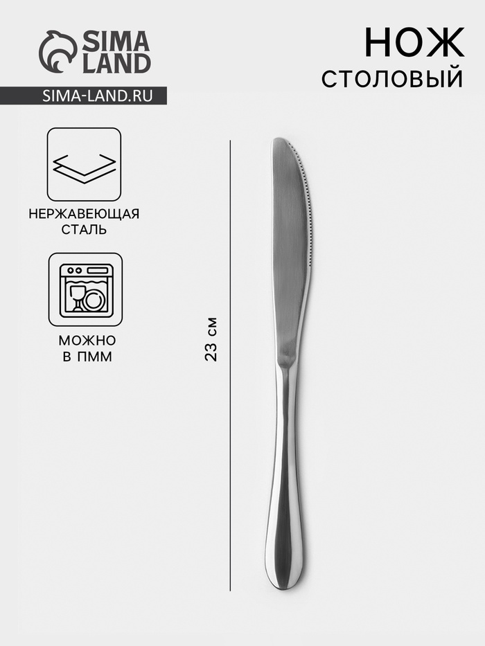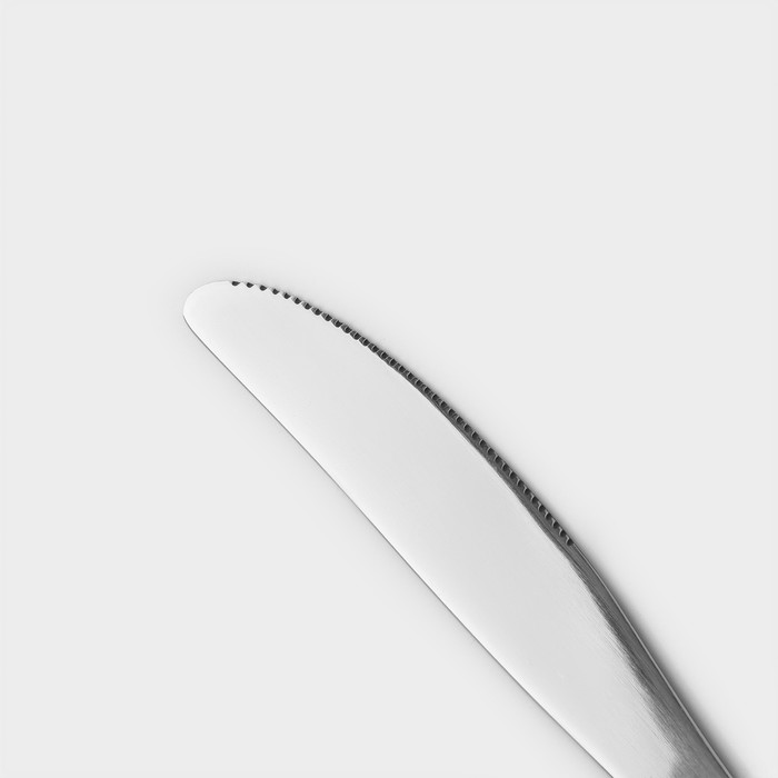 Столовый нож подходит как для ежедневного использования, так и для праздничной сервировки. Изделие изготовлено из прочной нержавеющей стали, удобно лежит в руке. На одной стороне острого лезвия имеется ряд зубчиков.