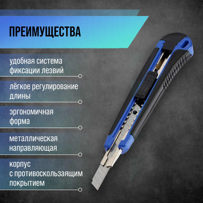 Нож универсальный ТУНДРА, металлическая направляющая, 2К корпус, 9 мм