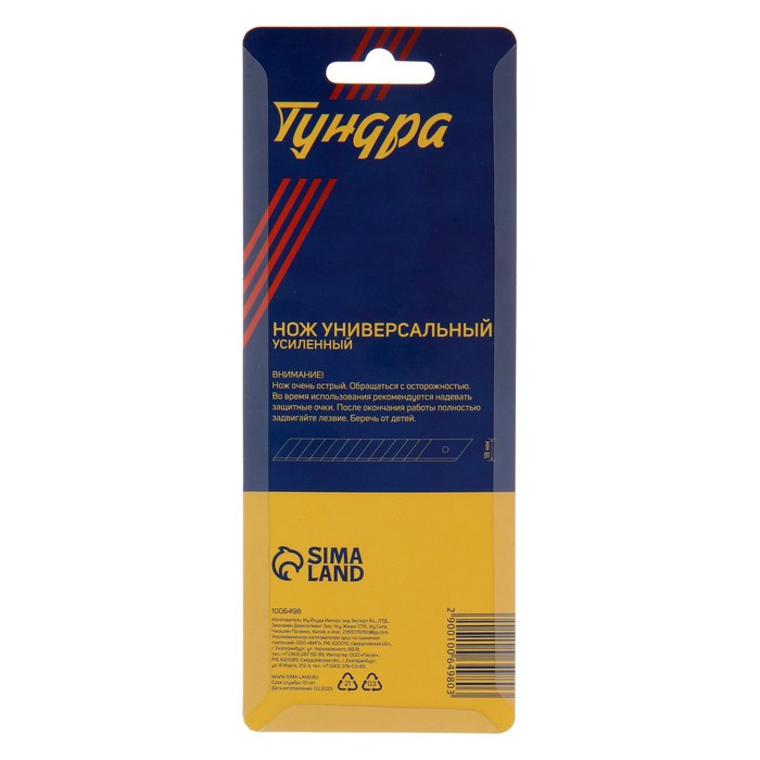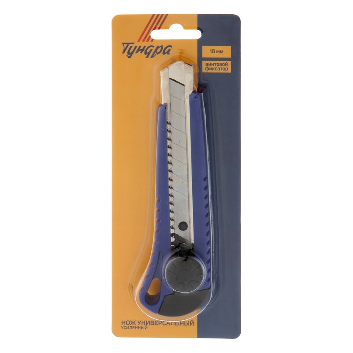 Нож универсальный TUNDRA — отличный помощник как в строительстве и ремонте, так и в быту. Такой инструмент поможет быстро и ровно раскроить обои и напольные покрытия, вырезать различные узоры и многое другое. Эргономичная рукоятка удобно лежит в руке во время работы.