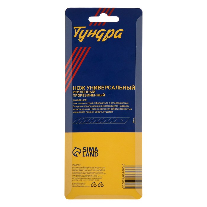 Нож универсальный TUNDRA — отличный помощник как в строительстве и ремонте, так и в быту. Такой инструмент поможет быстро и ровно раскроить обои и напольные покрытия, вырезать различные узоры и многое другое. Эргономичная рукоятка удобно лежит в руке во время работы.