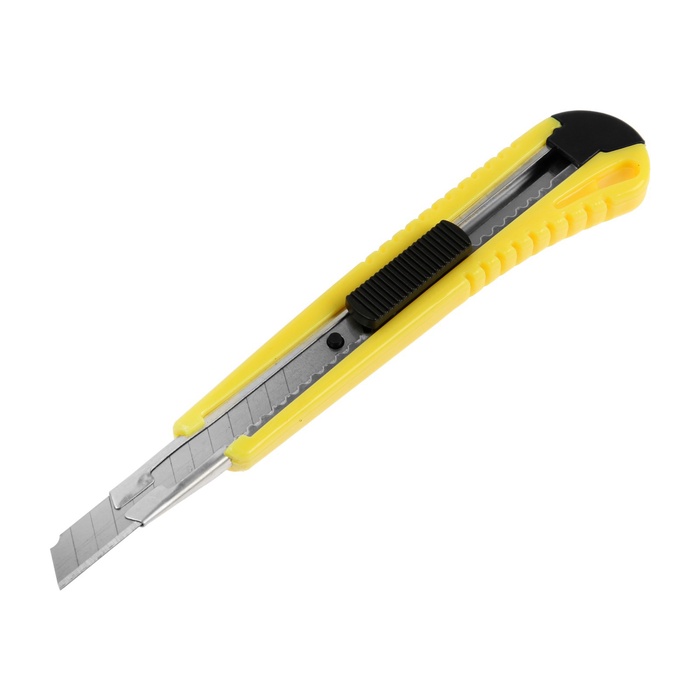 Нож оснащён сегментированным лезвием. Лезвие полностью задвигается внутрь, что гарантирует безопасное хранение.
