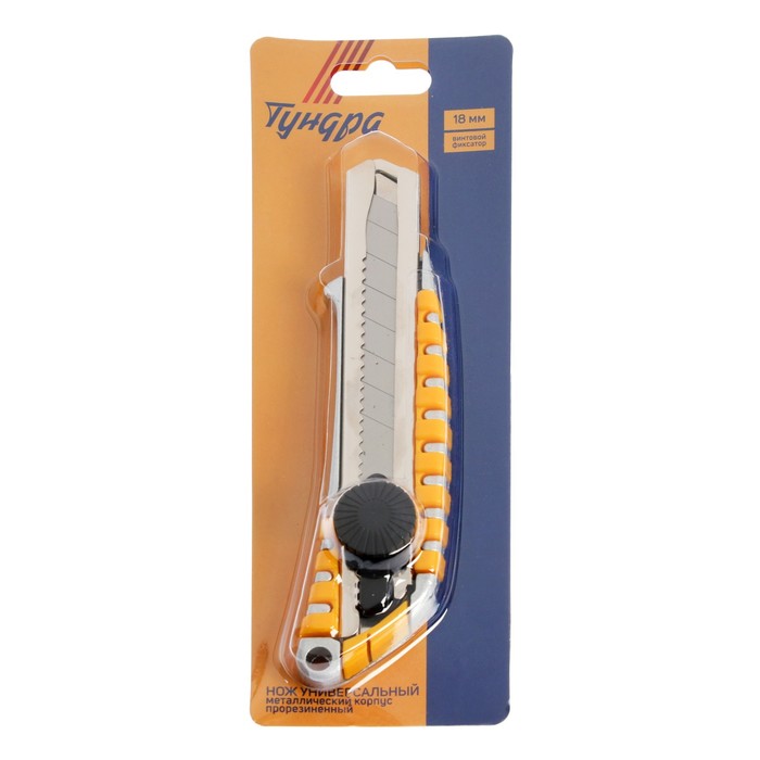 Нож универсальный TUNDRA — отличный помощник как в строительстве и ремонте, так и в быту. Такой инструмент поможет быстро и ровно раскроить обои и напольные покрытия, вырезать различные узоры и многое другое. Эргономичная рукоятка удобно лежит в руке во время работы.