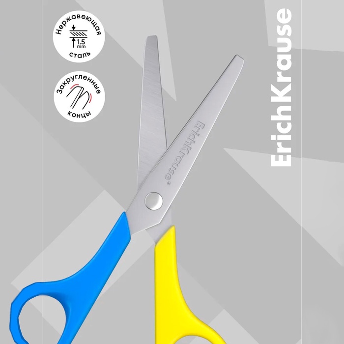 Ножницы с лезвиями из высококачественной нержавеющей стали с безопасными закругленными концами лезвий. Не ржавеют. Ручки классической формы изготовлены из ударопрочного пластика. Товар поставляется в нескольких вариантах цвета/дизайна без возможности выбора. Подходят для левшей.