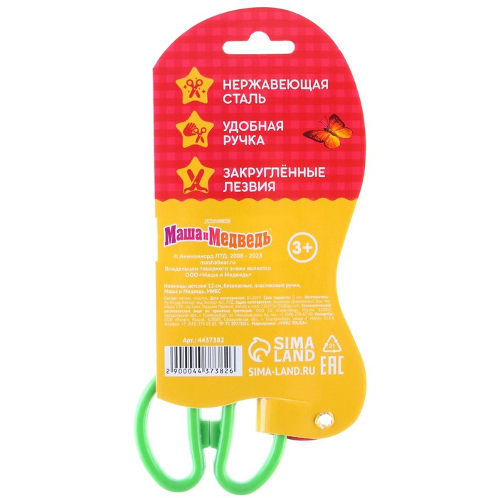 Ножницы детские 12 см, безопасные, пластиковые ручки, МИКС «Маша и медведь»