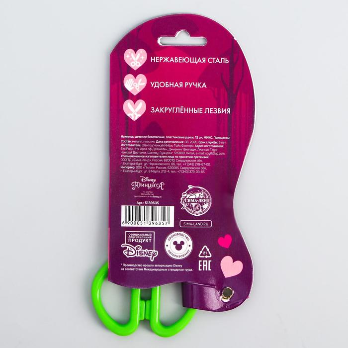 Ножницы детские 12 см, безопасные, пластиковые ручки, «Принцессы», МИКС