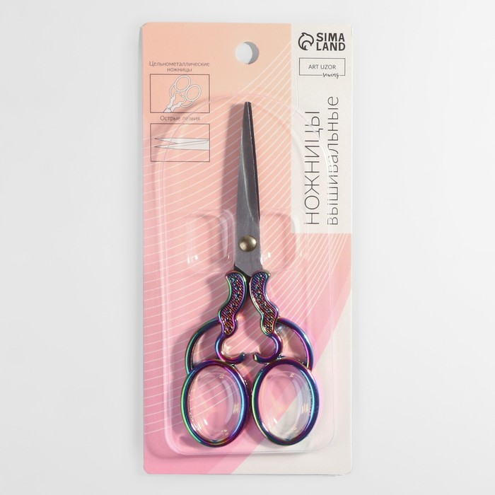 Стильные металлические ножницы с небольшими лезвиями помогут аккуратно обрезать нитки, края изделия и другие мелкие детали.