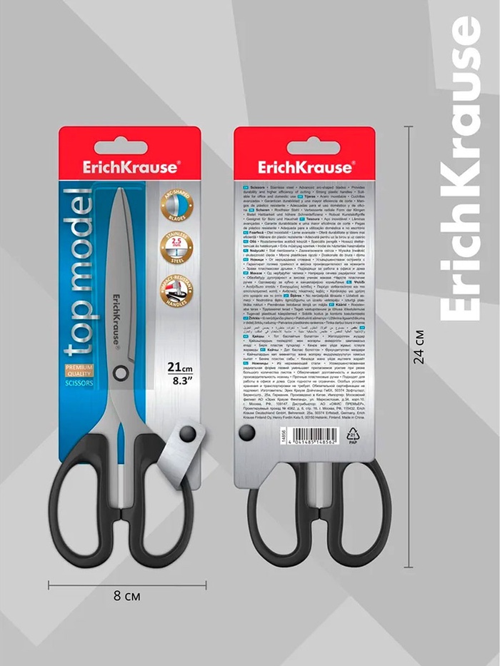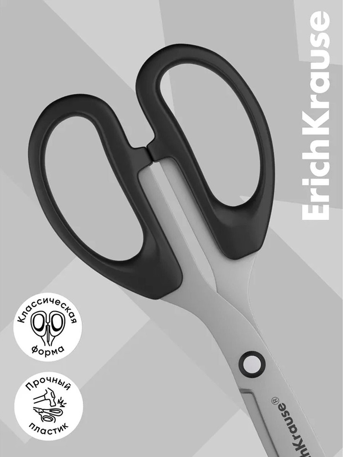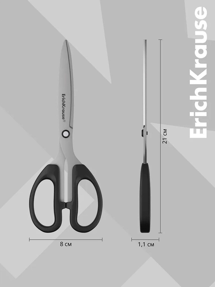 Универсальные ножницы с удлиненными лезвиями справляются с большинством материалов в офисе и дома. Их увеличенная толщина металла обеспечивает точный разрез без деформации бумаги. Длина 21 см подходит для обработки крупных форматов.