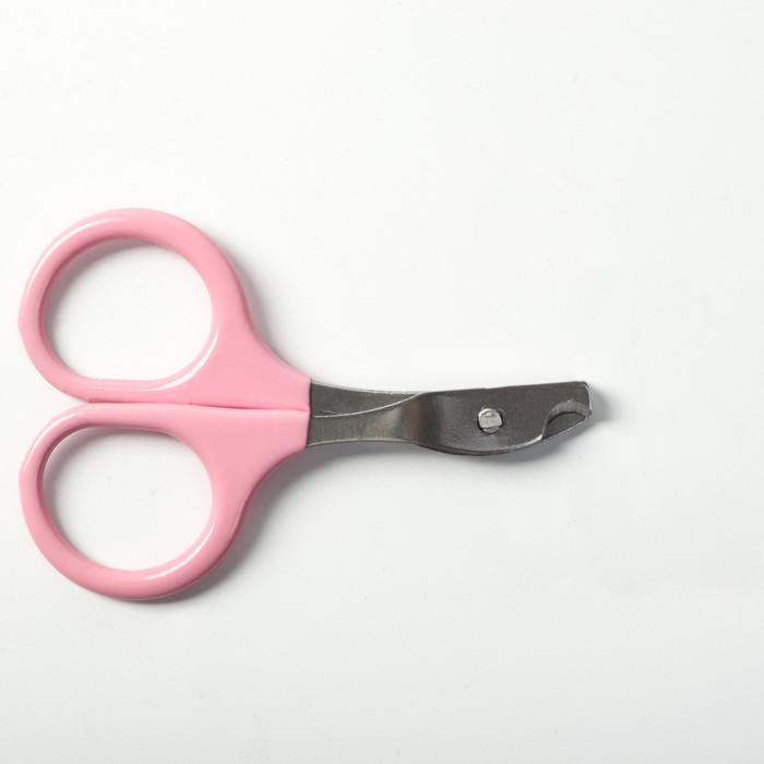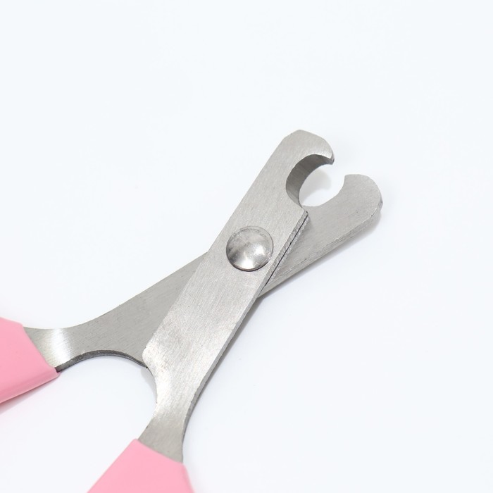 Ножницы-когтерезы изогнутые с прорезиненными ручками, отверстие 6 мм, розовые