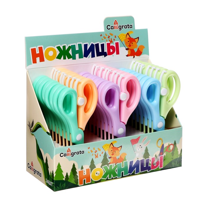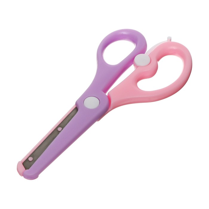 Ножницы пластиковые 13 см, фиксатор, с металлическими лезвиями и закруглёнными концами, безопасные, МИКС