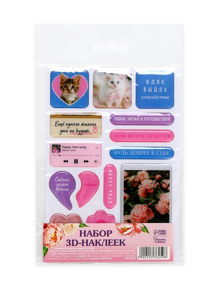 Объёмные 3D стикеры на телефон «Люби», 15 шт