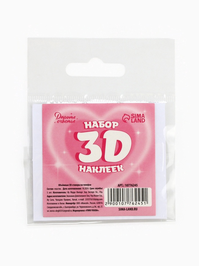 Объёмные 3D стикеры на телефон «Люби», 15 шт