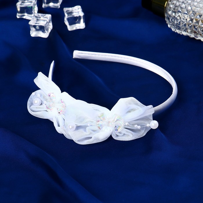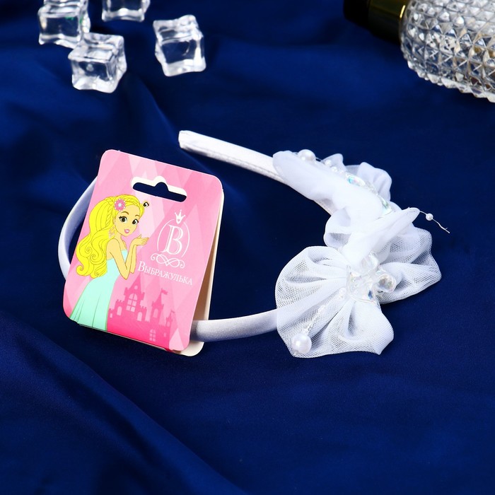 Праздничный детский ободок с белыми бусинками и бантиками станет элегантным акцентом для маленькой принцессы на выпускном и любом праздничном мероприятии. Этот аксессуар из пластика и текстиля легко дополнит любой наряд, подчеркивая юную невинность и изящество.