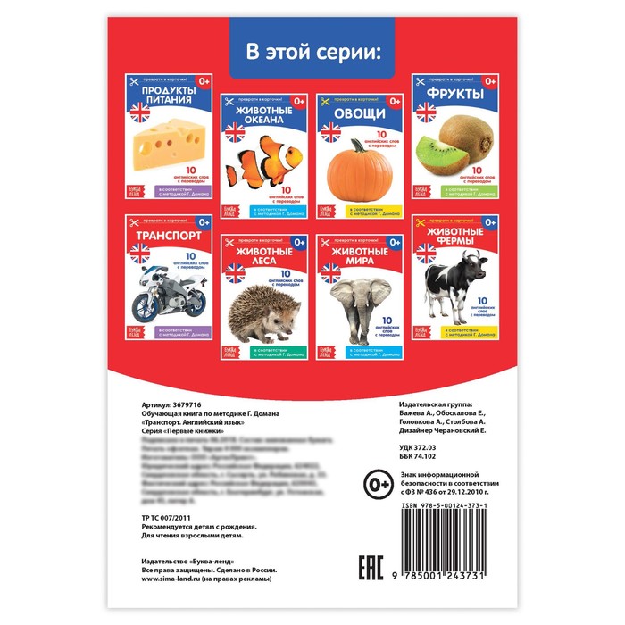 Обучающая книга «Транспорт на английском» — это эффективный инструмент для раннего развития ребёнка, созданный по методике Гленна Домана. Издание знакомит малышей с разнообразием транспортных средств, одновременно расширяя их словарный запас на русском и английском языках. Яркие иллюстрации и простые тексты делают процесс обучения увлекательным и доступным даже для самых маленьких.