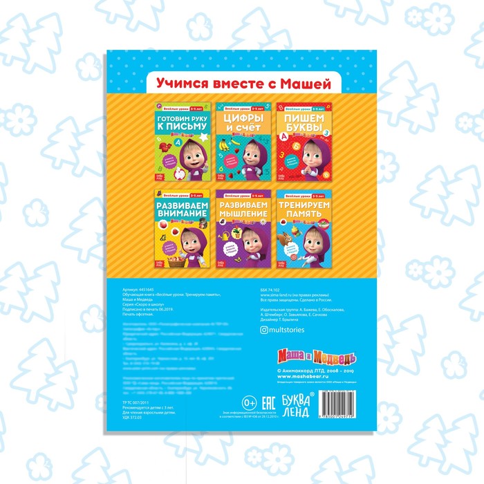 Книга «Весёлые уроки. Тренируем память с Машей и Медведем» станет отличным помощником для родителей, которые хотят увлекательно и эффективно развивать способности ребёнка. Сборник заданий помогает тренировать внимательность, улучшать концентрацию и формировать навыки запоминания через игры и упражнения. Яркие иллюстрации с героями популярного мультфильма делают процесс обучения интересным и доступным даже для малышей.