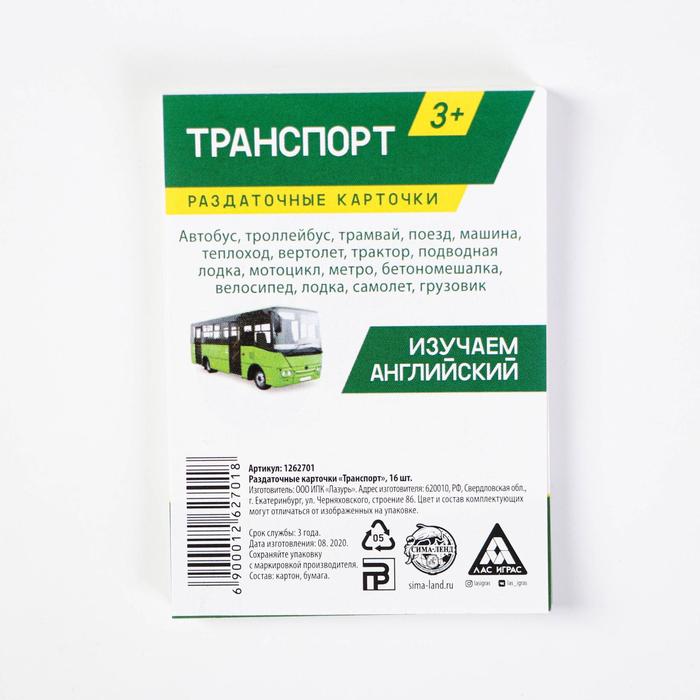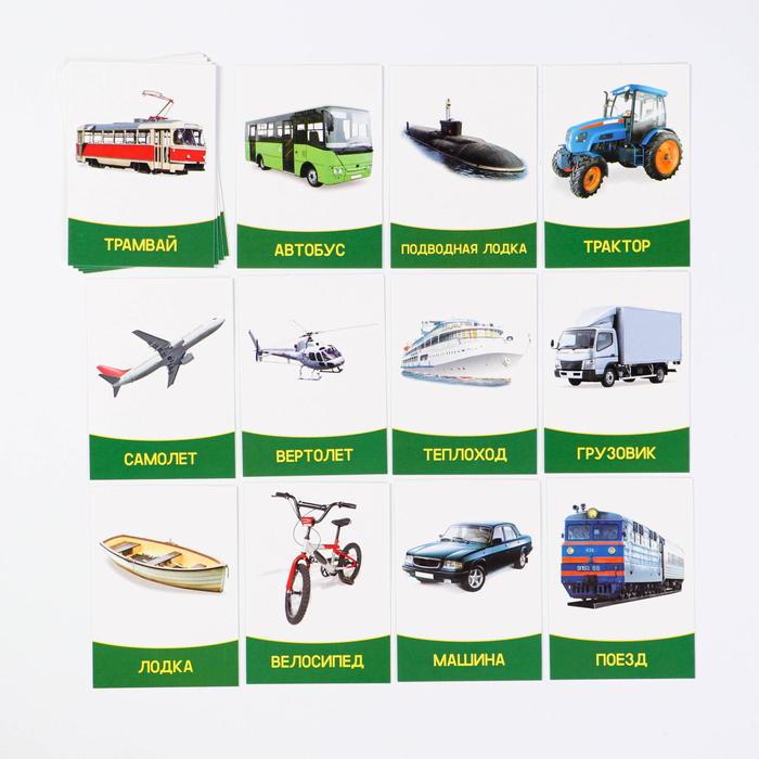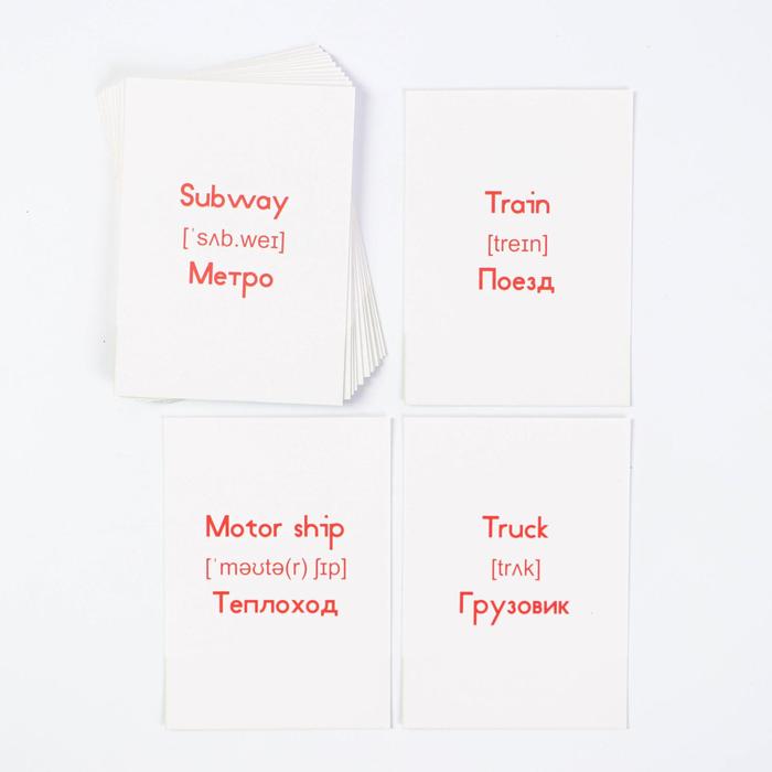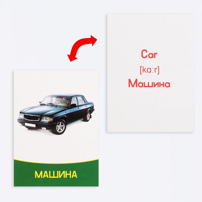 Каждый набор имеет свою особенность. С карточками «Транспорт» ребята узнают названия машин на русском и английском языке!