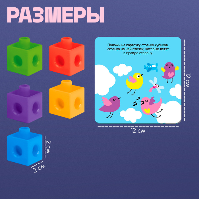 Обучающий набор «Кубики-конструктор: учимся считать» с заданиями, 50 кубиков, по методике Монтессори