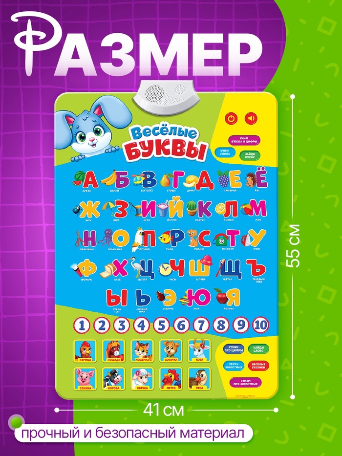 С плакатом ребёнок научится считать, читать, а также познакомится с забавными животными.