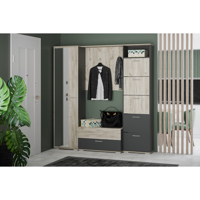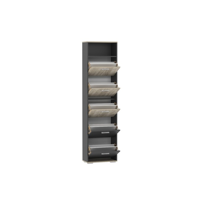 В тумбе для обуви оборудовано пять вместительных отделений для обуви, а для мелочей и аксессуаров предусмотрена ниша наверху.
