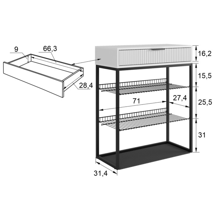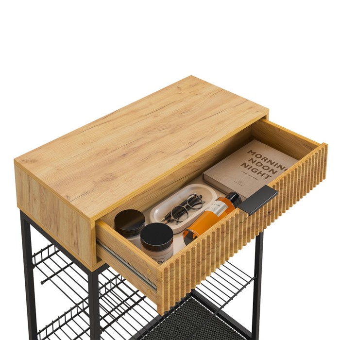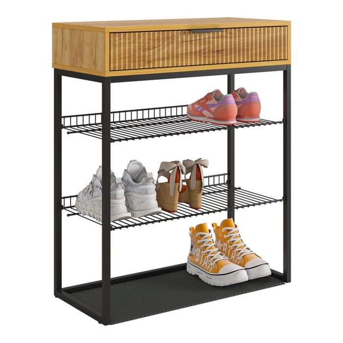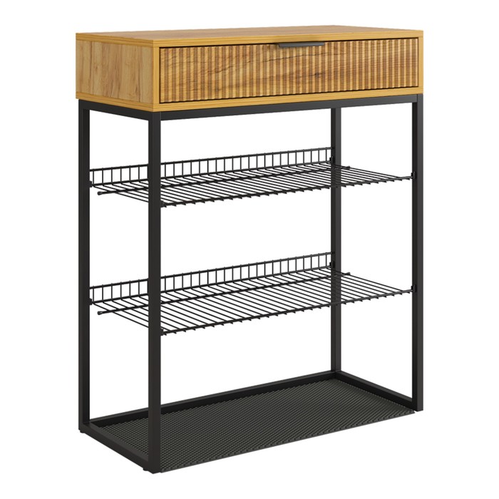 Обувница Вельвет - идеальное дополнение для современной прихожей. Обувница Вельвет прекрасно сочетает в себе стиль и функциональность. Её дизайн в стиле лофт идеально подходит для современных интерьеров. Выдвижной ящик с шариковыми направляющими обеспечивает бесшумное и плавное открывание, предоставляя удобный доступ к вашим аксессуарам и мелочам. Регулируемые опоры и специальный коврик обеспечивают дополнительный комфорт и защиту.