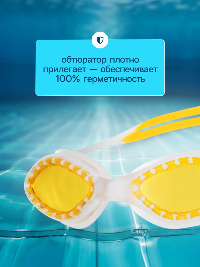 Линзы изготовлены из поликарбоната, имеют покрытие от УФ-излучения для защиты глаз ребёнка. Покрытие антифог защищает от запотевания очков. Мягкий и комфортный уплотнитель обеспечивает герметичность во время плавания. Ремешок регулируется и обеспечивает надёжную посадку.