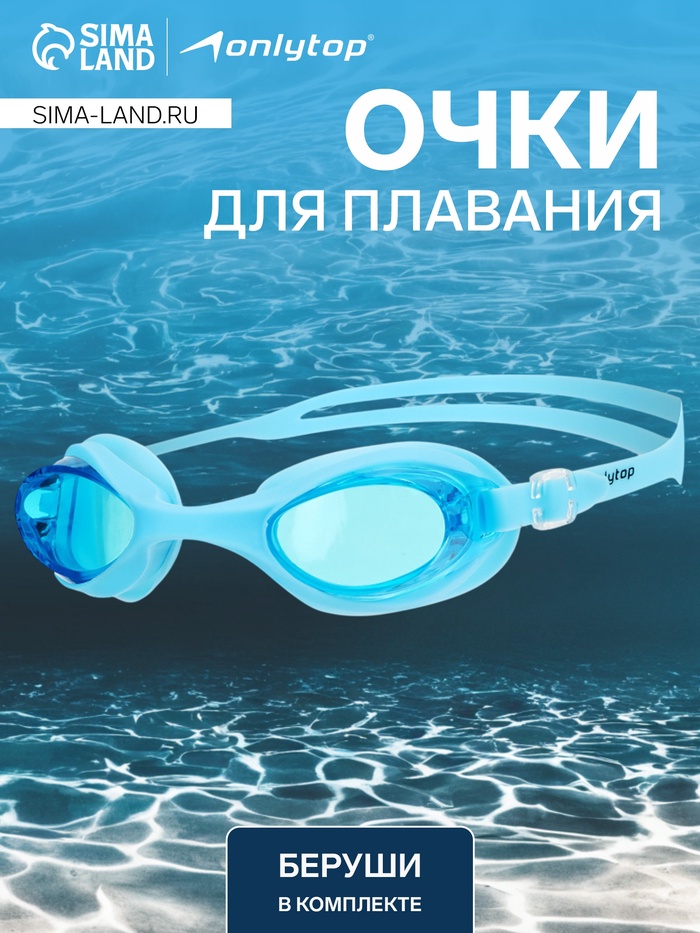 Очки для плавания ONLYTOP, беруши, цвет голубой