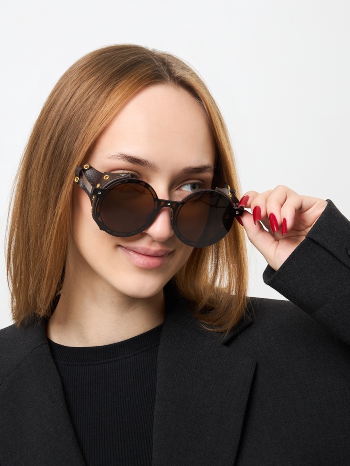 - Стильный дизайн: коричневая оправа и элегантные кожаные шторки делают эти очки модным акцентом в вашем гардеробе.