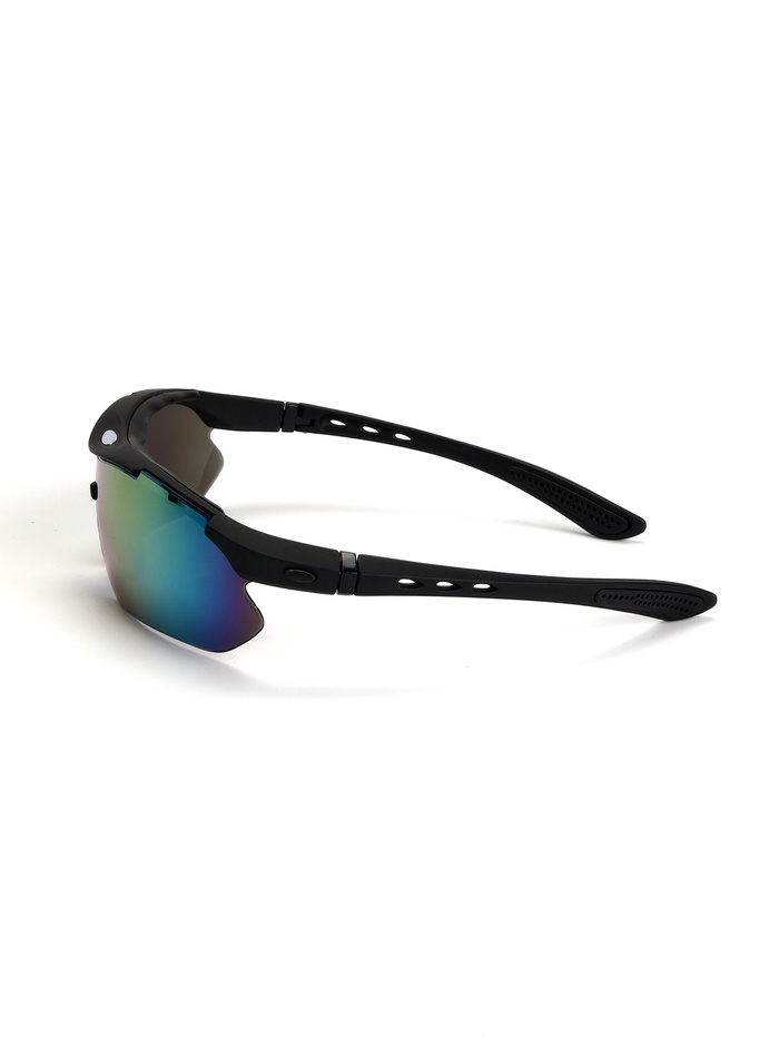 - Спортивный дизайн: полуободковая форма и чёрная оправа делают очки удобными и стильными для любого outdoor-мероприятия.